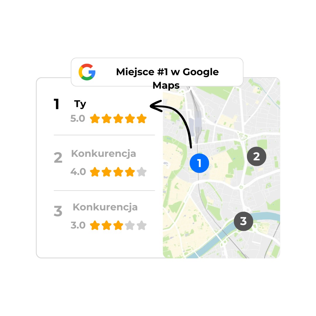 Ilość, jakość i regularność otrzymywania opinii to jeden z najmocniejszych czynników rankingowych wpływających na pozycję w lokalnych wynikach wyszukiwania Google i mapach Google.