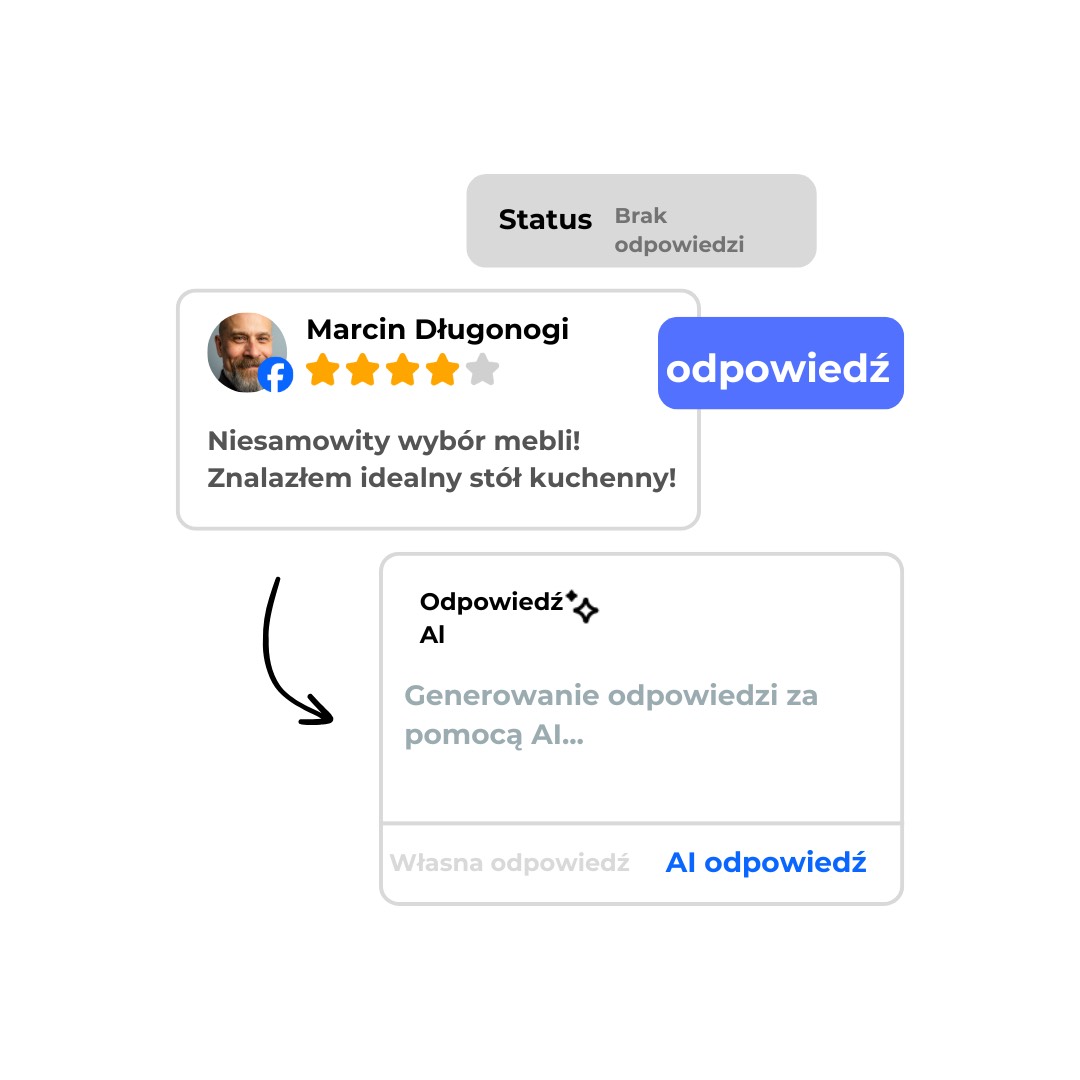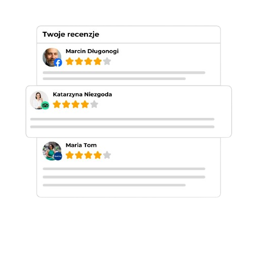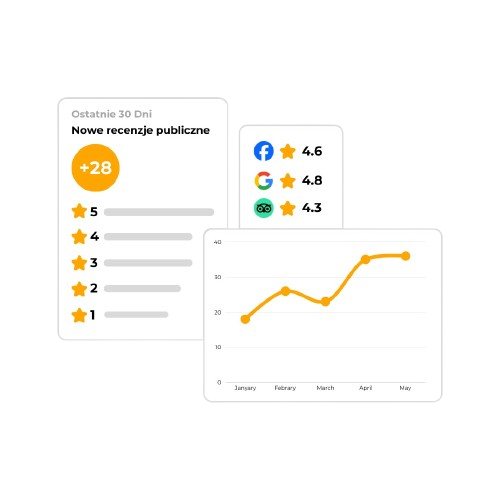 opartego na automatyzacji i AI, który pozwala bez wysiłku zbierać, filtrować, odpowiadać i udostępniać opinie, dbając o Twoją średnią ocen i podnosząc miejsce w rankingu.