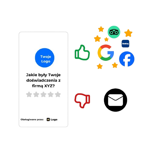 Wysyłaj klientom filtrujący formularz kierując pozytywne opinie na wybraną platformę ratingową np. do Google lub Facebooka.