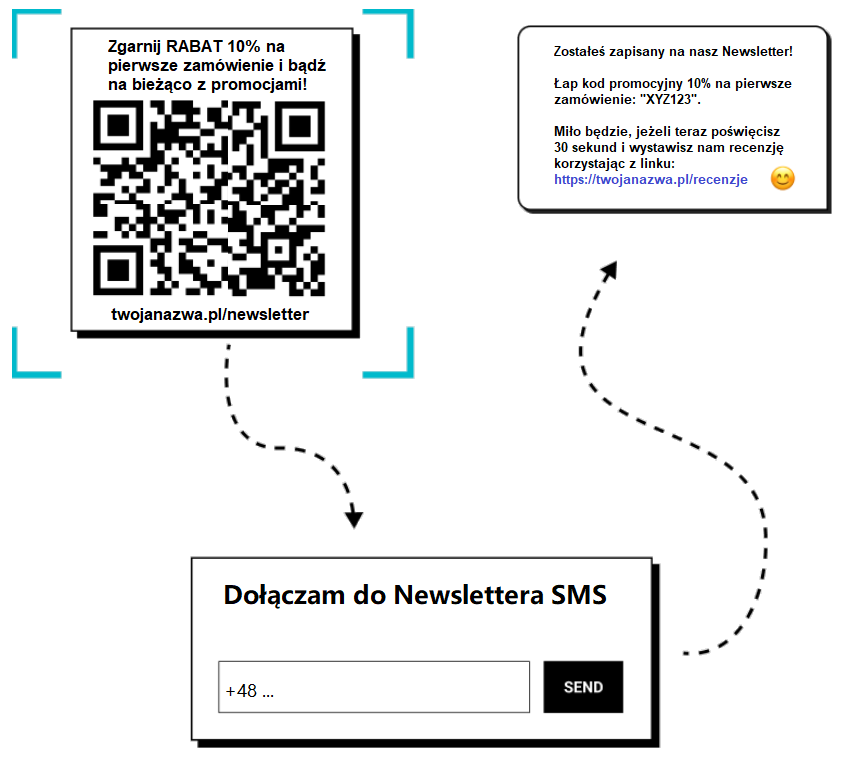 Oczywiście na podany numer oprócz kodu 10% na pierwsze zamówienie wysłana zostanie prośba o opinię, a klient zadowolony z otrzymanego rabatu jest bardziej skłonny do poświęcenia chwili na odwdzięczenie się pozytywną opinią.